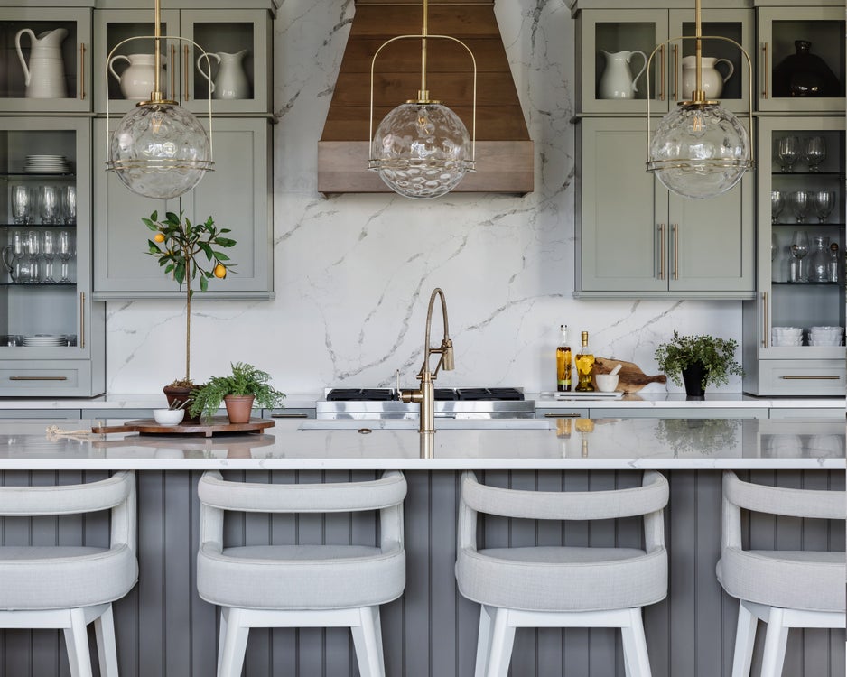 Consider layered lighting plans that move from task-worthy clarity to dimly lit ambiance. A second prep sink in the scullery to let guests help without getting in your way. A second dishwasher in the butlers pantry making clean-up a breeze for large events. And a chef’s table–style island where people gather not just to eat, but to watch the magic happen.
