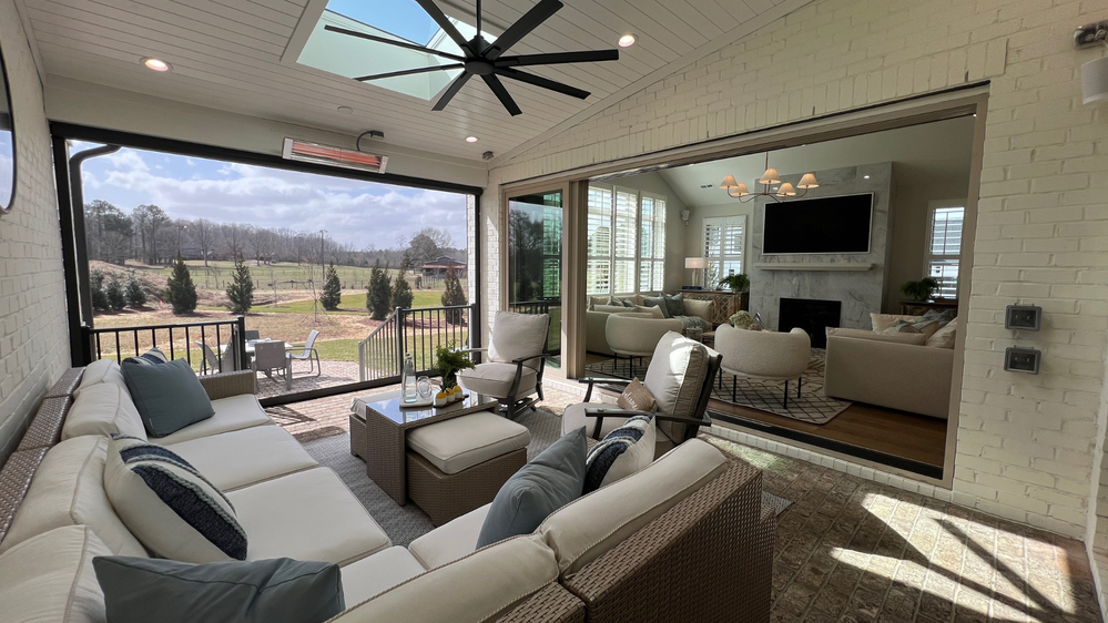 At the center of this extraordinary community stands the Monterey Model Home—a stunning showcase of thoughtful design and impeccable detail. From the moment you arrive, the cobblestone driveway, gas lanterns, and timeless architecture create a warm yet sophisticated welcome. Inside, the Monterey dazzles with an oversized kitchen, an open-concept great room with soaring vaulted ceilings, and walls of glass that seamlessly merge indoor and outdoor living.