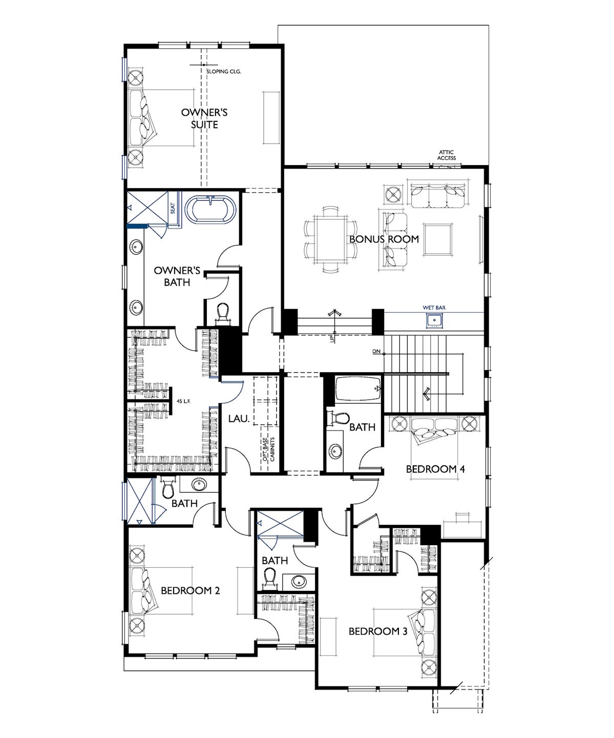 In a separate second-floor wing of its own you will experience the privacy of a serene Primary Suite. Close the door to your Primary Wing and every day you escape into the bliss of your luxury Primary Bedroom including a Spa Bath with a room-size walk-in closet. Truly a dream suite! Visit the model home 7 days a week.